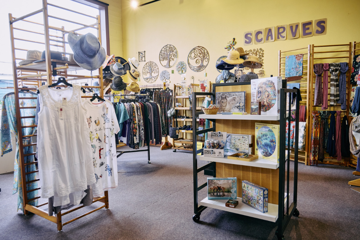 Discover the fun of shopping! Sibling Revelry is a delightful clothing store with an artistic twist, specializing in comfortable, easy-care styles for women – and some men’s shirts and hats. The shop offers a large selection of items made in the USA. Sizing covers S–XL and some plus sizes.