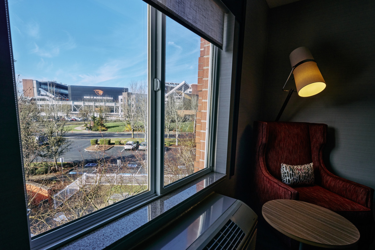 If you're here in Corvallis for an event at Oregon State University, it's easy to explore Corvallis and find ways to stay and play a little longer. Visit our charming and historic downtown, full of excellent restaurants; theatres where you can see concerts, plays, and more; unique, locally-owned boutiques to browse and shop in; and art galleries. Need to get outside and stretch your legs? Corvallis has an array of beautiful city parks, like Avery Park, the Riverfront Commemorative Park, and more, and we're close to a lot of huge, gorgeous natural areas here in Benton County, like Fitton Green Natural Area or Chip Ross Park and Natural Area. If you're in a mood to sample Oregon wine, we have over 20 wineries in our area, with three tasting rooms right here in town.